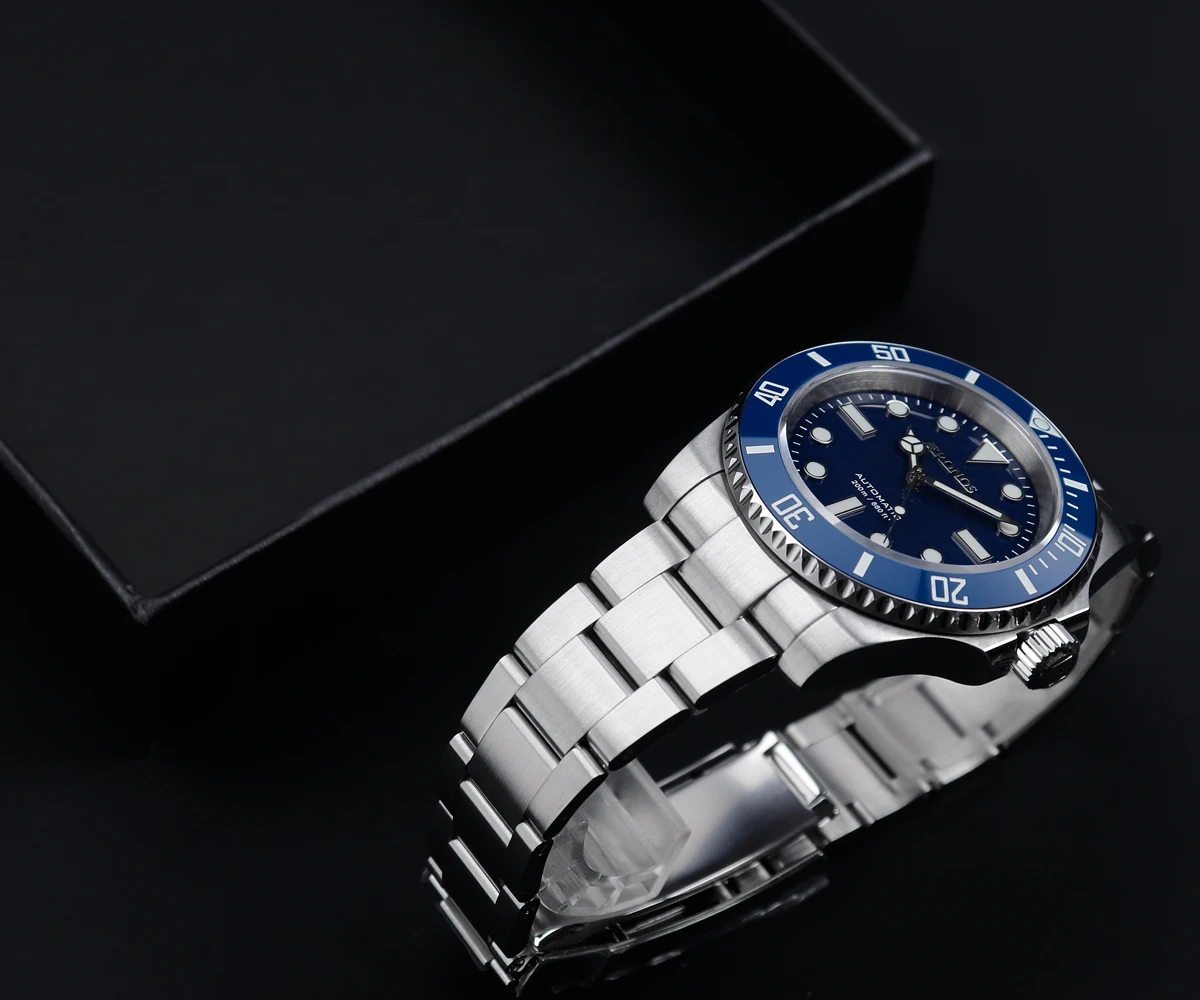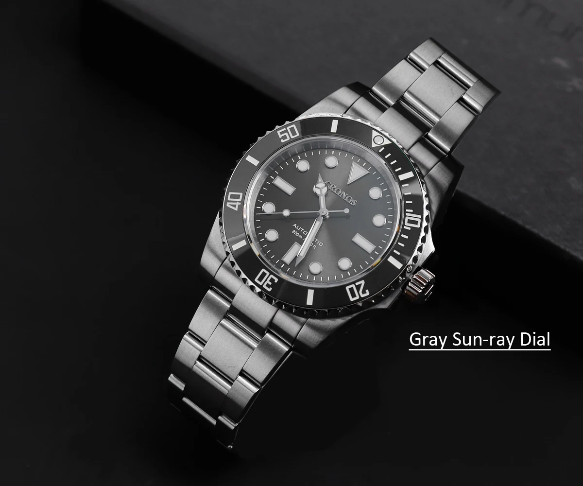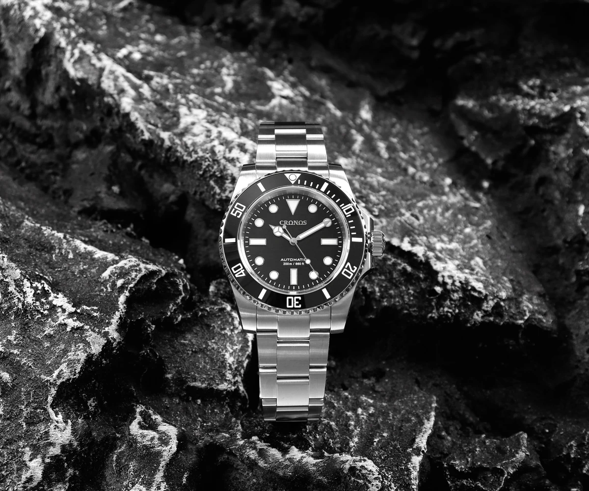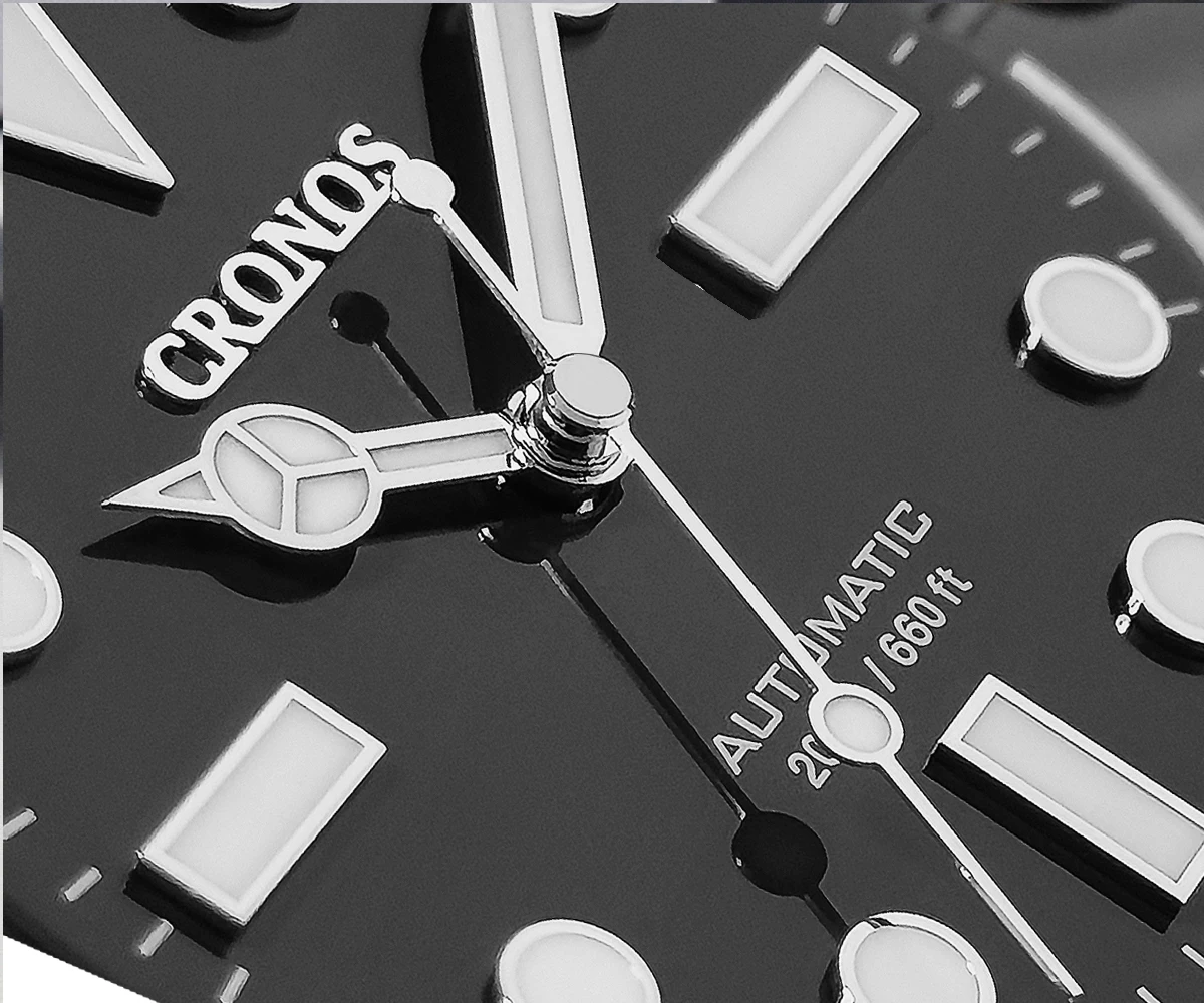 Cronos Sub Diver Men Watch No Date PT5000 Brushed Bracelet Ceramic Bezel 200 meters Water Resistant Glideclasp